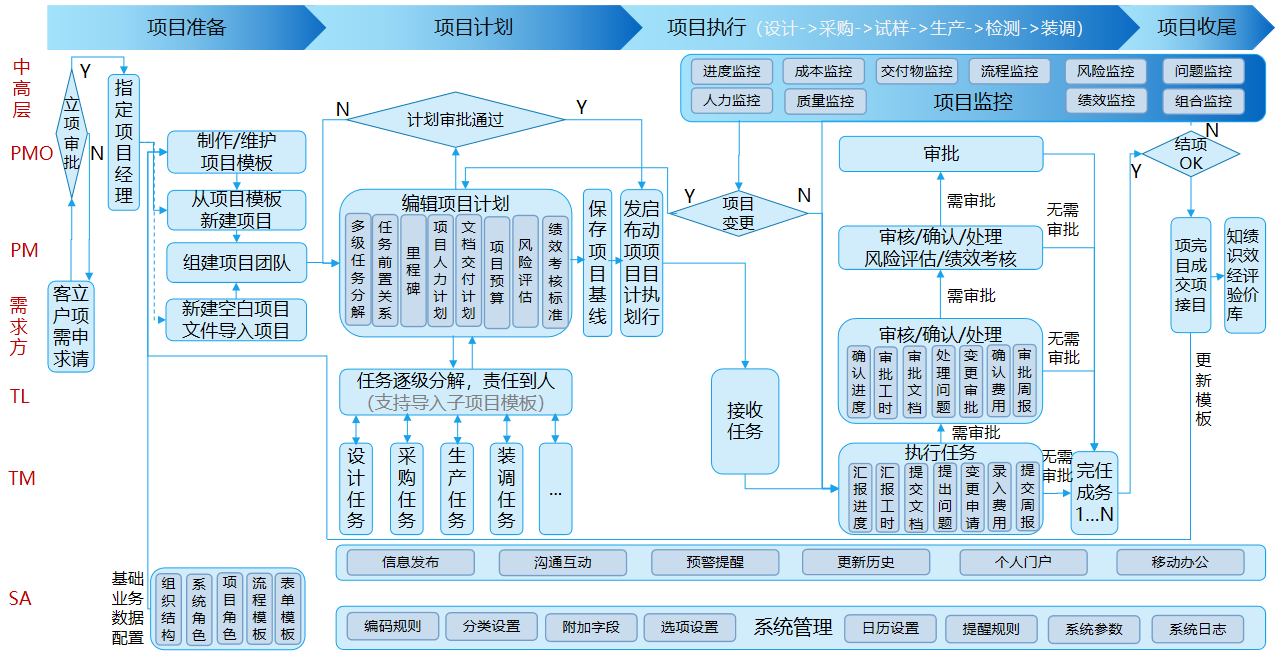 imis-pmx系统还涵盖全面深入的项目管理功能,包括立项管理、项目模板管理、计划管理、任务管理、文档管理、问题管理、风险管理、成本管理、变更管理、沟通管理等,以及工作台、项目集、项目组合管理、统计分析等。