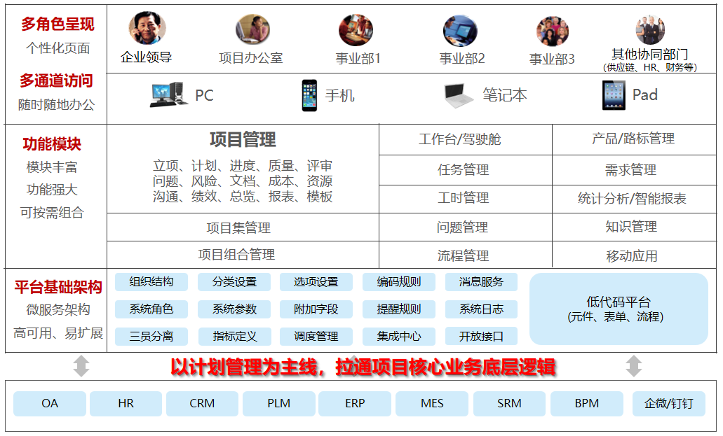 ③ 跨部门跨专业协作难:产品研发项目是需要多个部门和专业协作完成的,但跨部门跨专业协作困难、过程记录不全;团队沟通不畅、无预警提醒机制