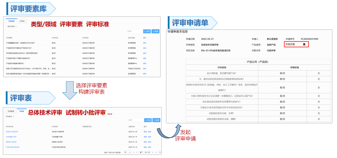 2)支持自定义评审表单和表单元素,可选择评审要素构建;支持自定义评审流程,按流程由指定的领域评审专家进行评审,反馈评审意见,启动评审会议,形成评审结论;支持评审流程完结后的动作,如:自动完成任务