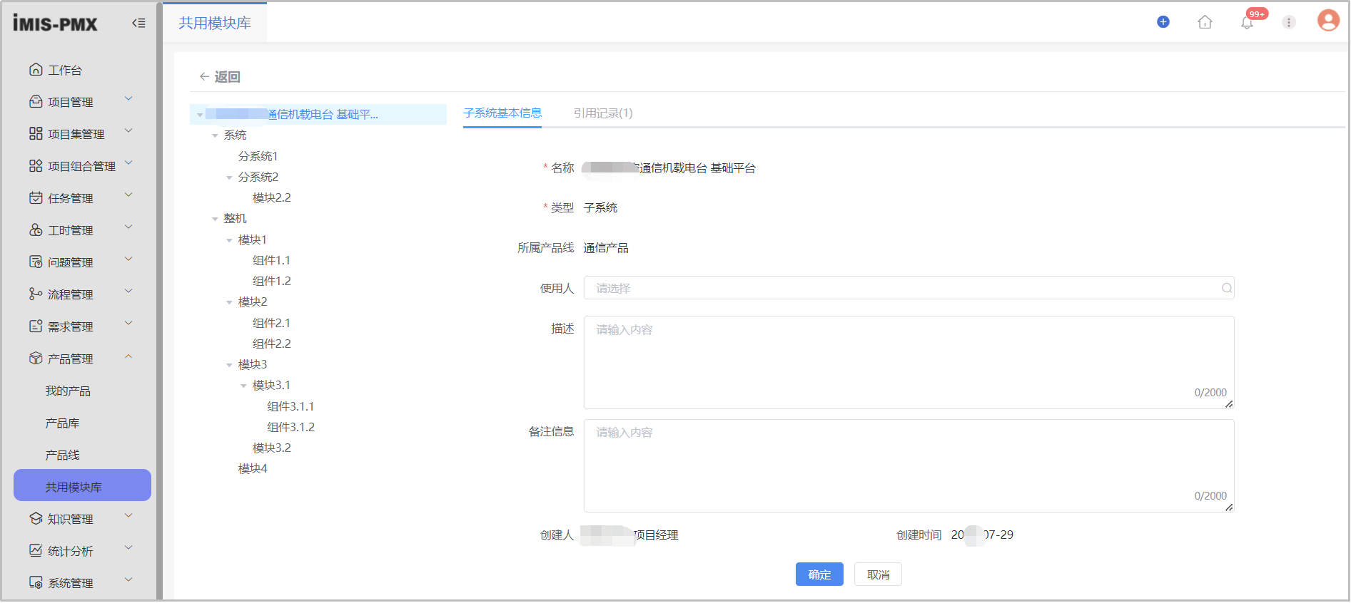 3) 支持cbb管理:共用基础模块cbb(common building block, cbb)是指在不同产品、系统之间可以共用的零部件、模块、技术及其他相关的设计成果。通过使用cbb,研发团队可以避免重复设计和开发相同的功能,从而加快产品上市时间并提高产品质量。imis-pmx支持管理cbb平台或子系统,支持基于cbb导入创建产品结构,支持在项目中引用cbb和更新版本。